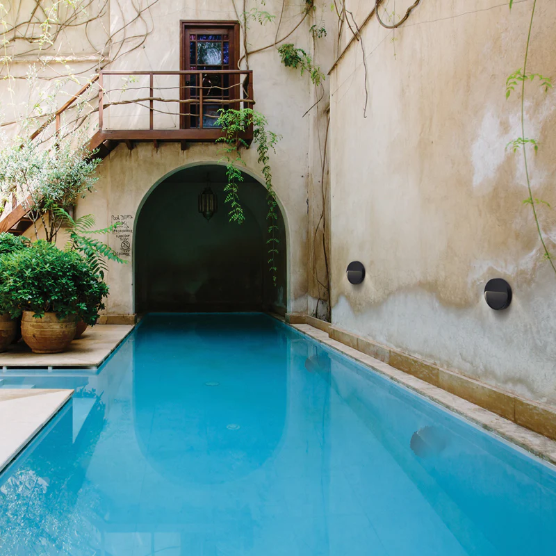 Wall downface fitting with polycarbonate and ABS body and polycarbonate diffuser. Includes LED driver.
