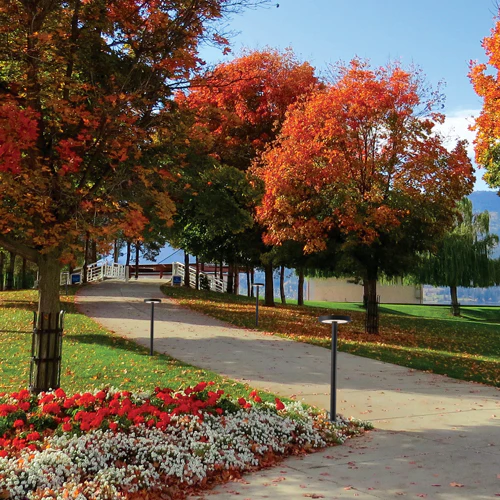 Solar rechargeable bollard with die-cast aluminium body and polycarbonate diffuser, no wiring required. Includes motion sensor.